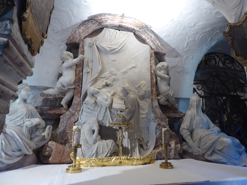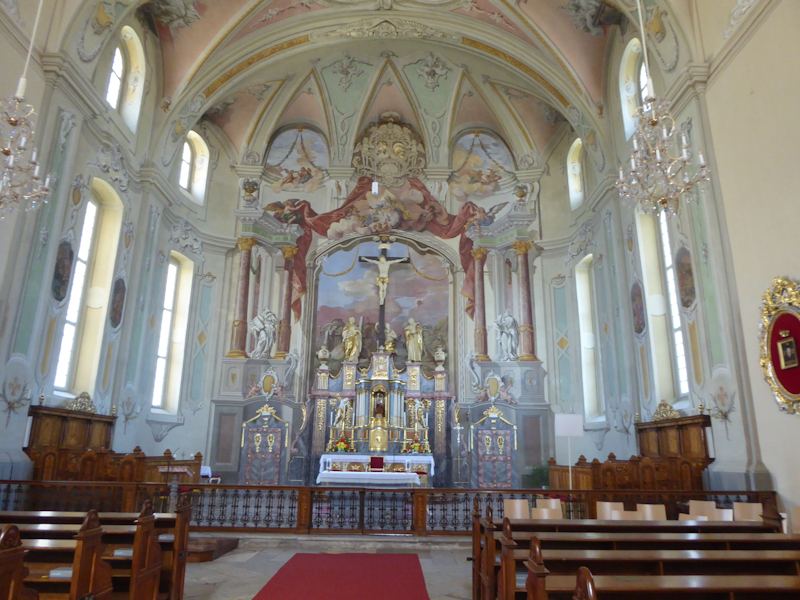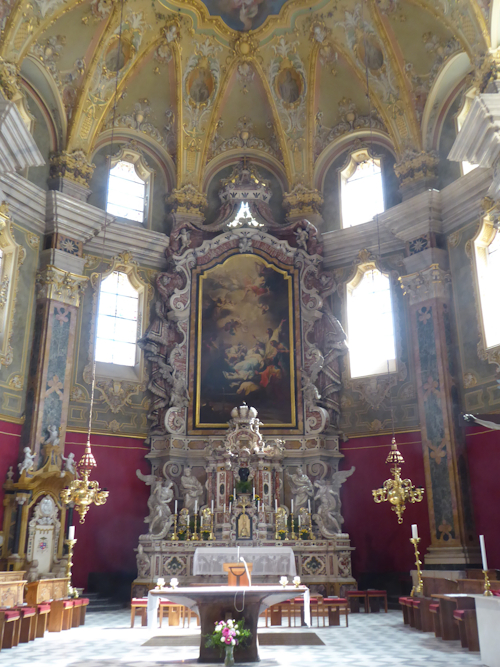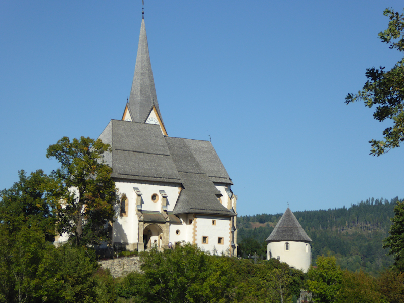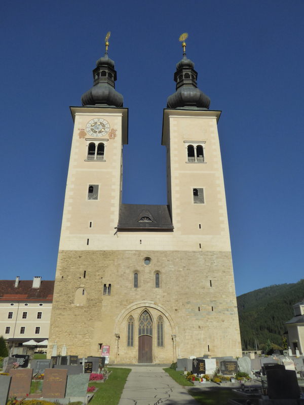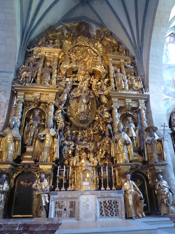 Am Nachmittag ging es ins Gurktal. Unser Hauptziel – der Dom zu Gurk - wo die Hl. Hemma wirkte. Der Dom ist im Hochromanischen Stil erbaut. Der Altar ist 16 x 9 Meter ist aus Holz geschnitzt und mit Blattgold vergoldet. Er verfügt über 72 lebensgroße Figuren (den vier Evangelisten und anderen Heiligen) und 82 Engelsköpfen. Die Krypta weist an die hundert Säulen auf. Hier befindet sich auch das Grab der Hl. Hemma und dem Stein, auf dem sie selbst gesessen sei. Der Sage nach – wer auf diesem Stein sitzt, oder ihn berührt, dessen Wünsche gehen in Erfüllung.