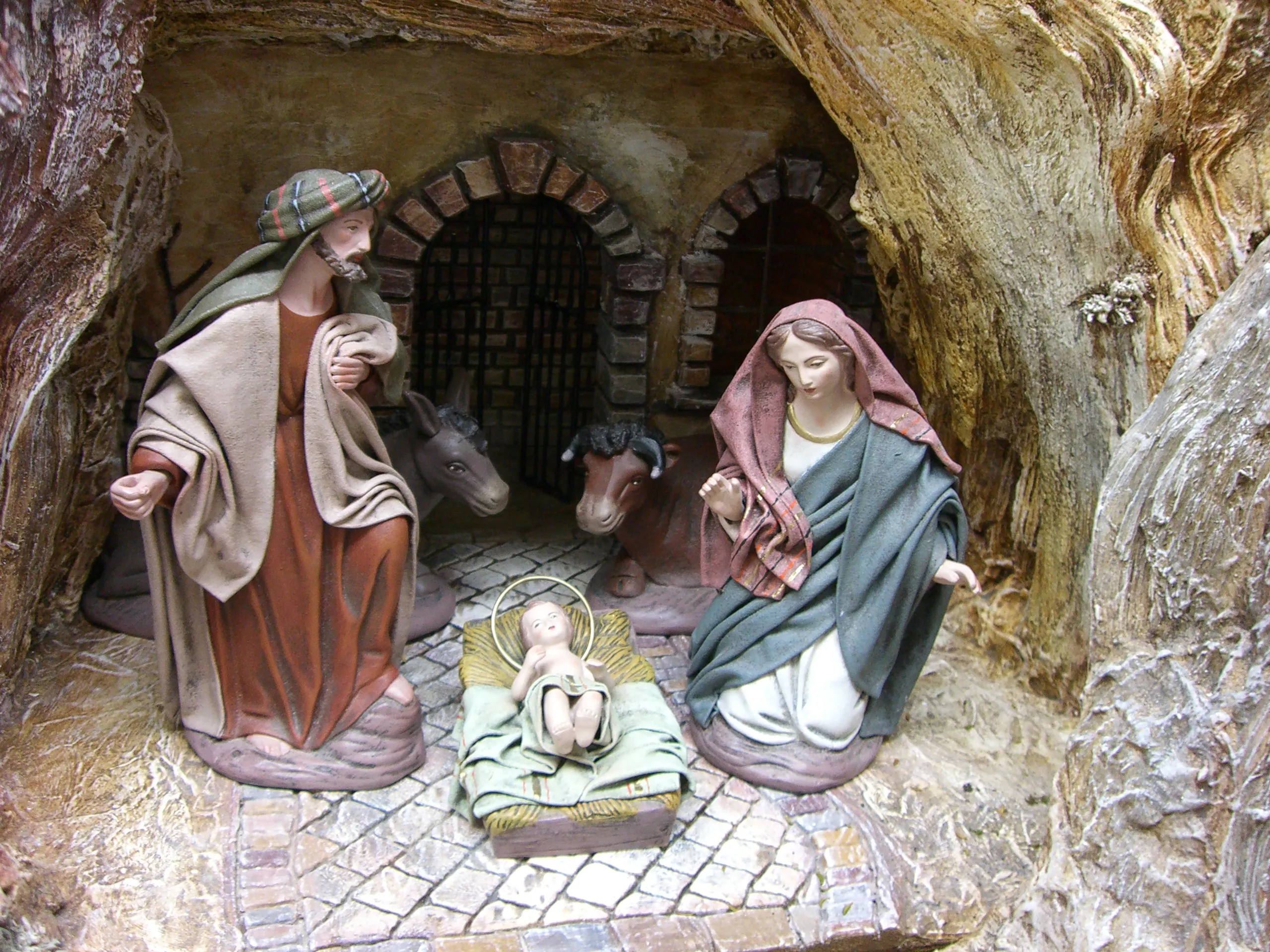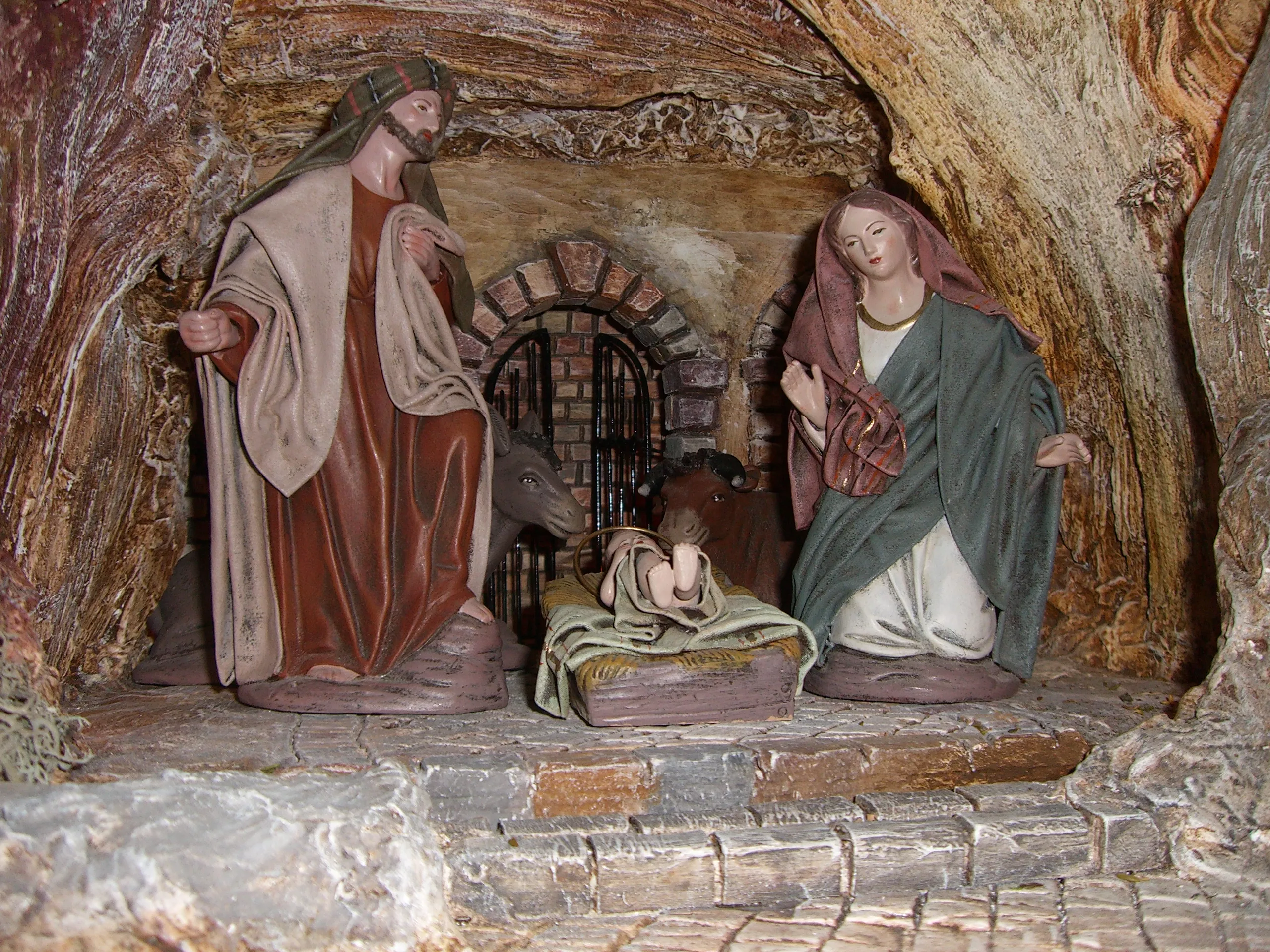 Die Tradition der Weihnachtskrippen geht bereits auf das Frühchristentum zurück, doch zeigten die Darstellungen der ersten Jahrhunderte nur das Jesuskind (gemäß der Überlieferung des Lukasevangeliums in einer Futterkrippe liegend) mit den zwei Tieren Ochs und Esel. Die Figur der Maria kam erst im Mittelalter dazu, der hl. Josef noch später. (Wikipedia)